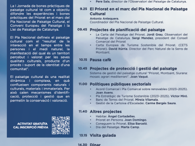 La 1a Jornada de bones pràctiques de Paisatge cultural és gratuïta tot i que cal realitzar la inscripció prèvia abans del dilluns 8 de desembre.