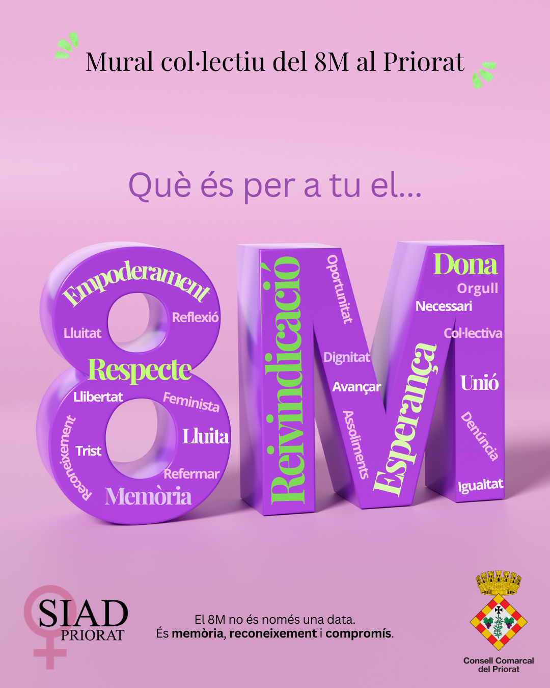 L’Àrea d’Igualtat del Consell Comarcal del Priorat ha fet públic el mural col·lectiu impulsat amb motiu del 8 de març, Dia Internacional de les Dones, un cop tancat el període de participació. La iniciativa, de caràcter participatiu, ha culminat amb la creació d’un mural format per tres núvols de paraules construïts a partir de les aportacions de la ciutadania de la comarca.