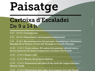 El Dia del Paisatge tindrà lloc l’endemà, que a la mateixa Cartoixa d’Escaladei, s’hi celebri la 1a Jornada de Bones Pràctiques de Paisatge Cultural, impulsada pel Ministeri de Cultura i que té per objectiu la difusió de les experiències i bones pràctiques del Priorat en el marc del Pla Nacional de Paisatge Cultural, el Conveni Europeu del Paisatge i la Llei de Paisatge de Catalunya.